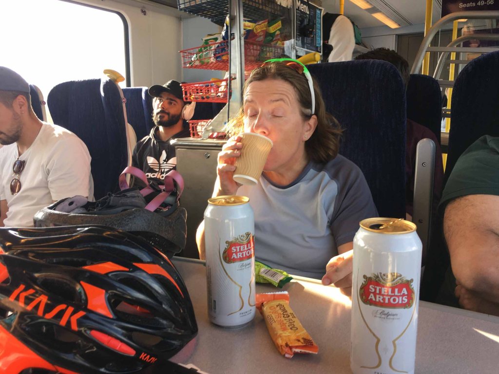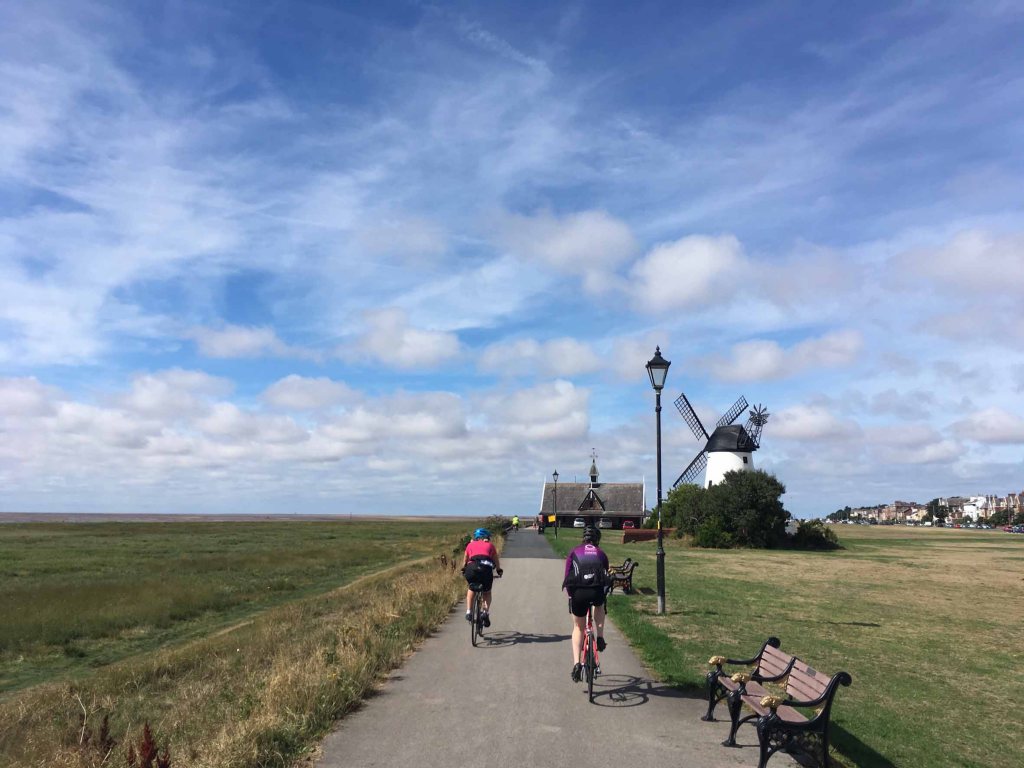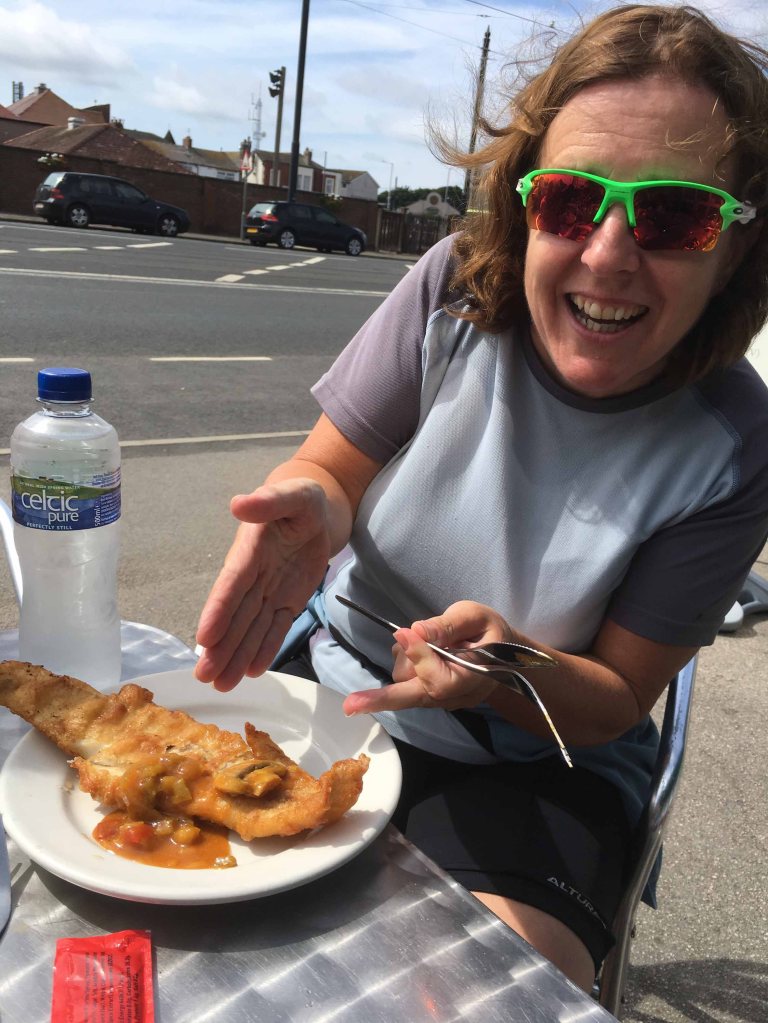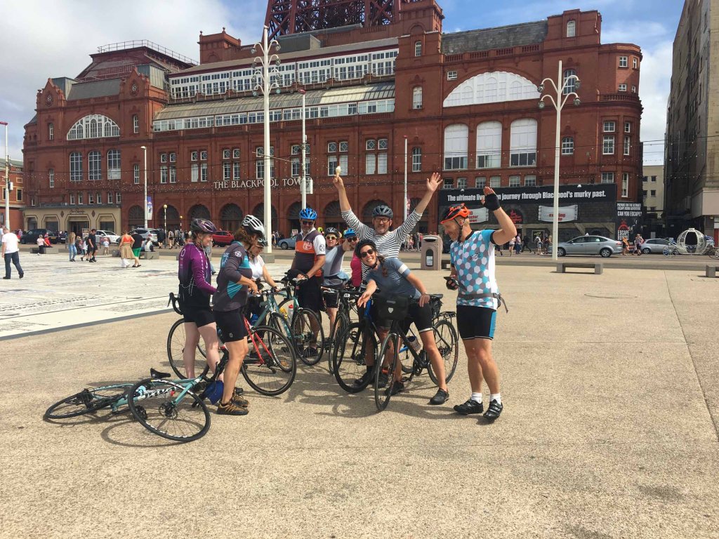 Much swerving of buggies, day-trippers, mobility scooters, hen and stag doo’s occurred along Blackpool promenade, before things quietened down along the sea wall past Cleavleys. Stunning views across Morecambe Bay whilst being serenaded by a cross dressing nun on a motorised piano.