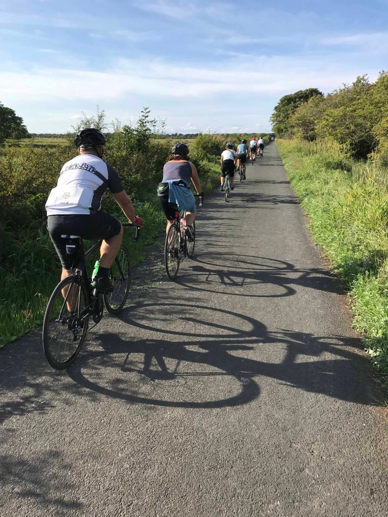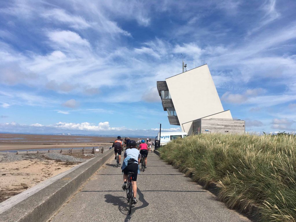 Lunch in Fleetwood whist waiting for the ferry to take us across the Wyre Estuary. A bit of off-piste riding picked up Plover Scar Lighthouse before dropping into Glasson Dock.