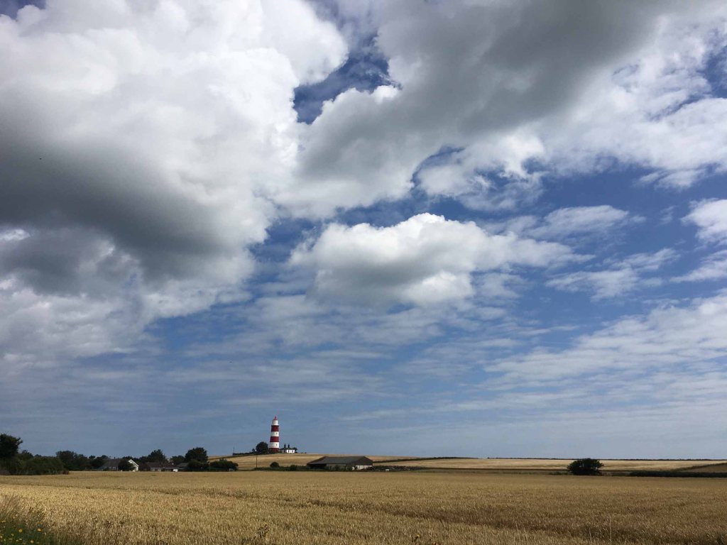 After another guilt free big breakfast we headed straight for the coast and on to Happisburgh which is actually pronounced Haze-borough!!! Why oh why? If it was Grimburgh, I could understand. Anyway its a place with a very happy looking red and white striped lighthouse along with half a Time & Tides Bell. Its part of a nationwide arts project, have a look, its fab.
