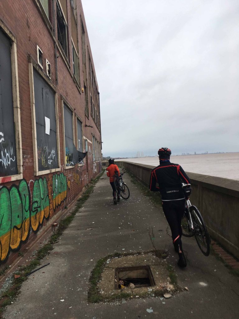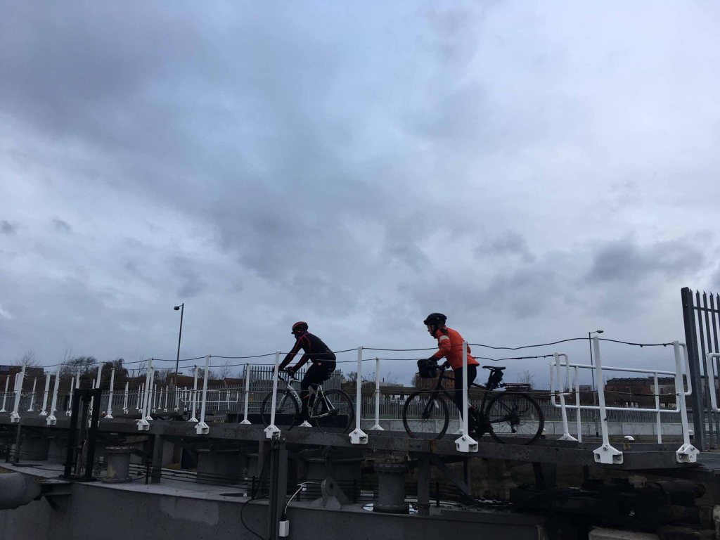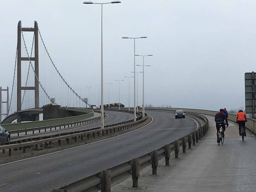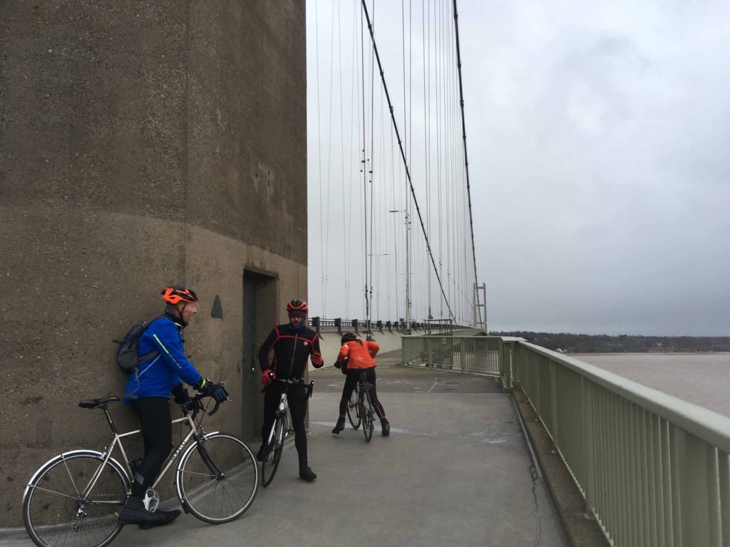 After a long drive to Goole, Rachel proceeded to get the next train home, dog issues. Nightmare. We had amazing weather and a kind westerly pushing us out to the coast (sorry Rachel). Not sure what Graham felt about pedalling his beautiful road bike across muddy fields! We headed south down the Trent, crossing at Gunness, then north back up to the Humber. The wind was less kind when trying to cross Humber Bridge which was once the longest single span structure in the world (1.4km). The gusts around the tower bases threatened to dump us all in the estuary. Tim went back over the bridge to go visit his in laws in Scunny. The rest carried on along the waters edge into Hull