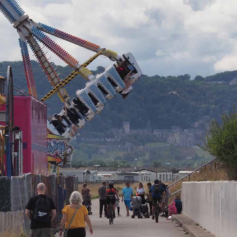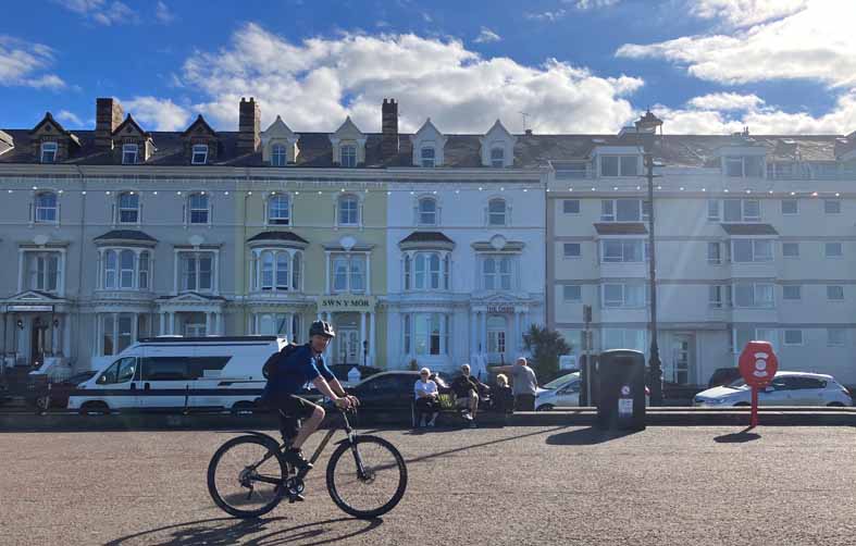 Point of Ayr marks the change from the industrial estuary to the Irish Sea and tourism. Its a world of golf courses, caravan parks and Amusement parks. But, partly due to stunning weather, it is a lovely ride. From Prestatyn to Colwyn Bay we ride on the promenade with the sea by our sideband far reaching views towards our destination.